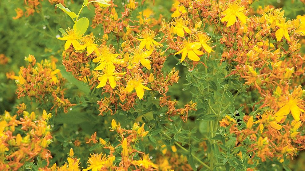 Lutte contre les démons : Comme l’indique son nom vernaculaire d’« herbe de la Saint-Jean », le millepertuis fleurit aux alentours de la Saint-Jean, le 24 juin, soit tout près du solstice d’été (21 juin). C’est la période de l’année où les jours sont les plus longs et où la lumière est à son apogée. Le nom scientifique d’Hypericum perforatum provient du grec hyper (au-dessus) et icon (image) : on peut le traduire par « plus beau qu’une image », mais aussi par « au-dessus de l’image ». Les Grecs de l’Antiquité plaçaient en effet cette plante au-dessus de leurs représentations divines pour éloigner les mauvais esprits. L’épithète perforatum vient quant à lui du latin, il signifie « perforé ». En effet, les feuilles de cette plante, qui atteint une hauteur de 20 à 90 cm, sont ponctuées de minuscules glandes : à contre-jour, ces dernières donnent l’impression que les feuilles sont percées. Au Moyen-Âge, on rapprochait cette caractéristique des blessures du Christ : le millepertuis était donc utilisé pour éloigner le diable et les démons, ce qui lui a valu son autre nom de chasse-diable, Fuga daemonum. Connu aujourd’hui comme antidépresseur naturel, il aide à lutter contre les idées noires et les humeurs maussades.