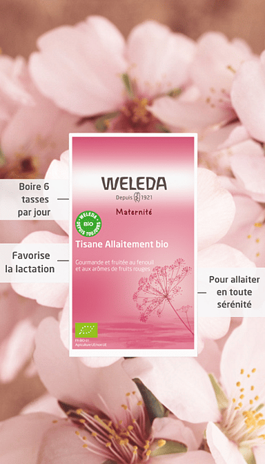 ⦁ La Tisane Allaitement bio Weleda contient des plantes bio, reconnues pour favoriser la production de lait maternel.